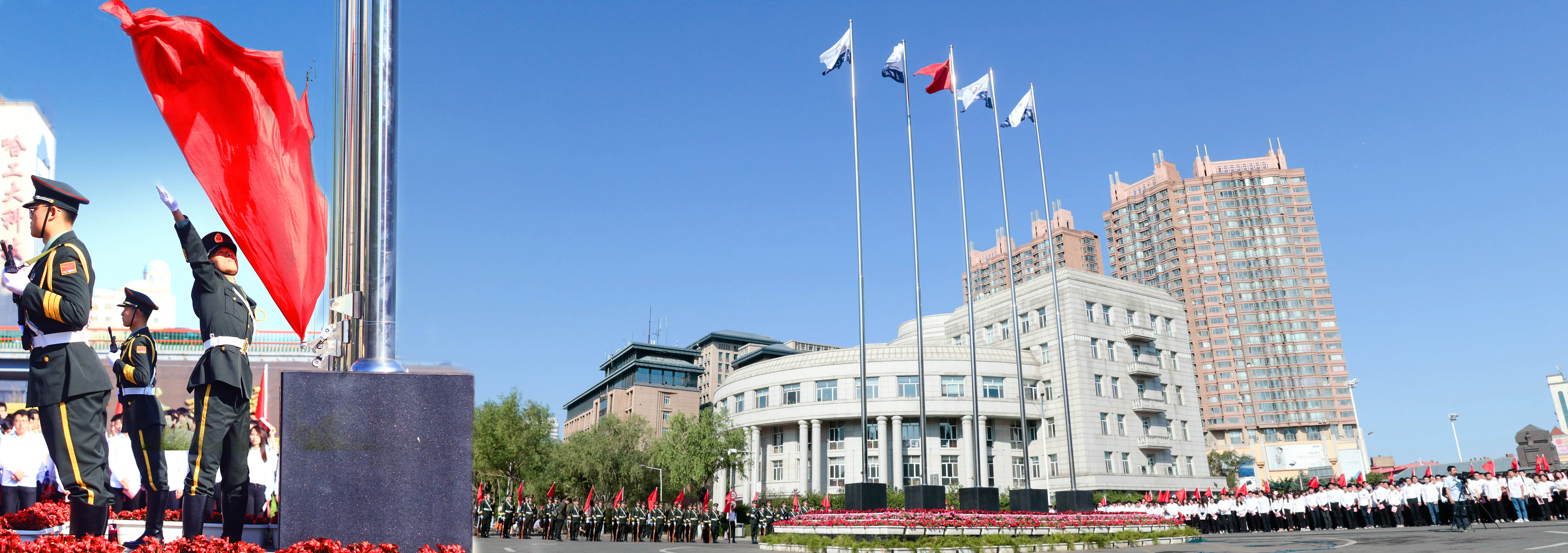 庆祝建校98周年 一校三区举行主题升旗仪式