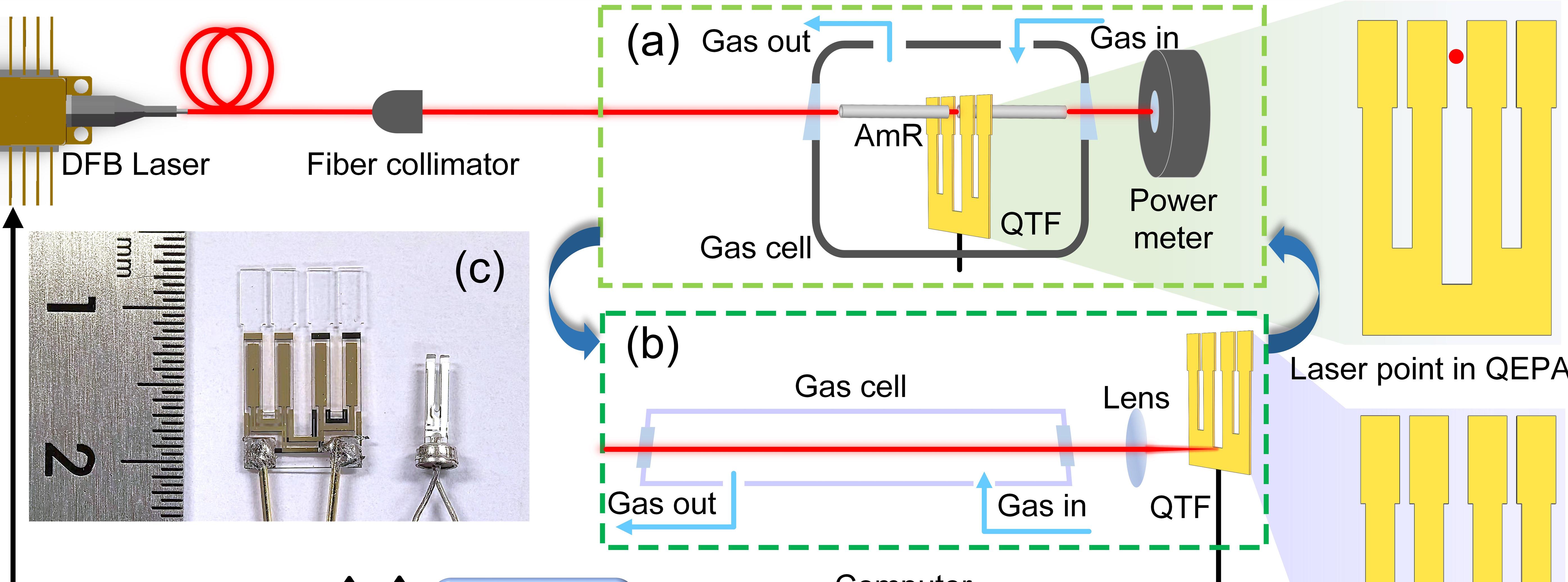 哈工大马欲飞课题组实现基于四叉指石英音叉的高灵敏度激光光谱气体检测