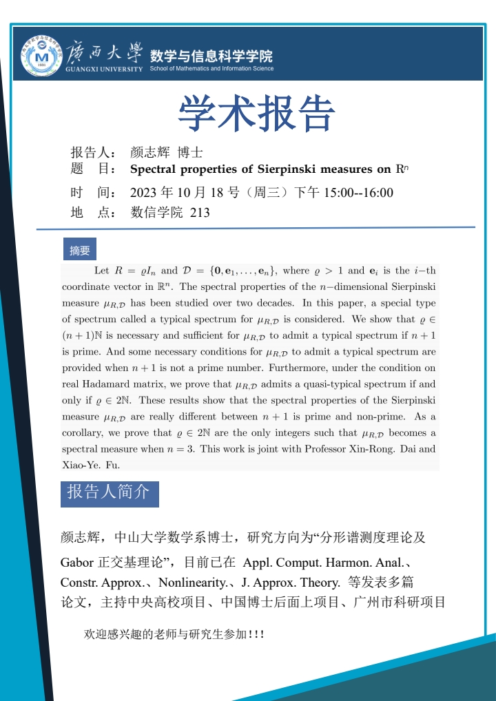 学术报告:Spectral properties of Sierpinski measures on R^n