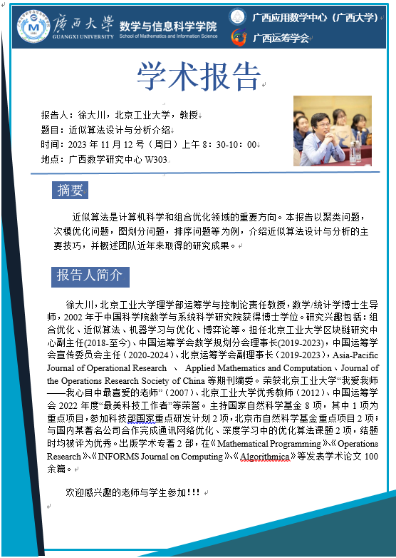 学术报告:近似算法设计与分析介绍