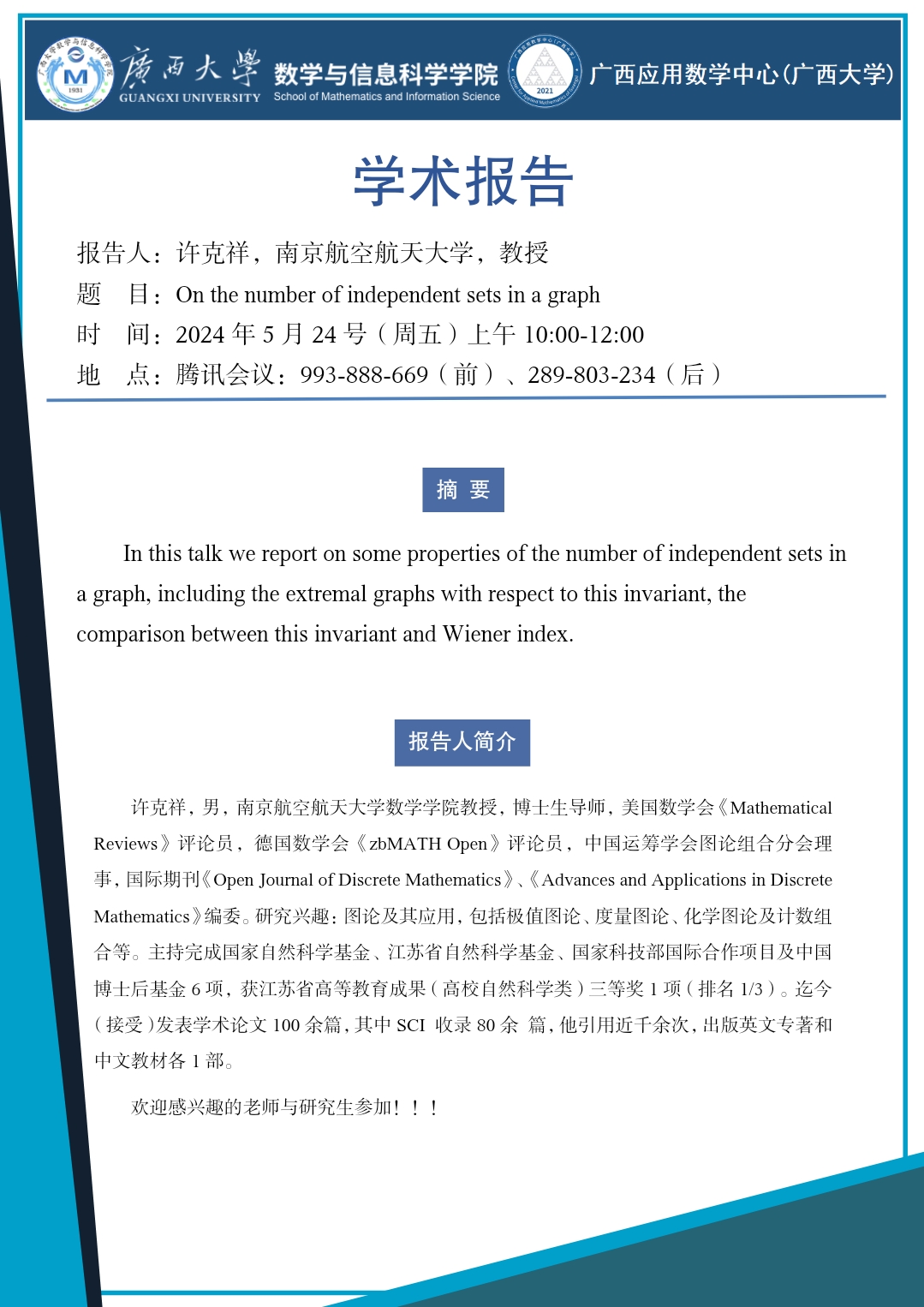 学术报告:On the number of independent sets in a graph