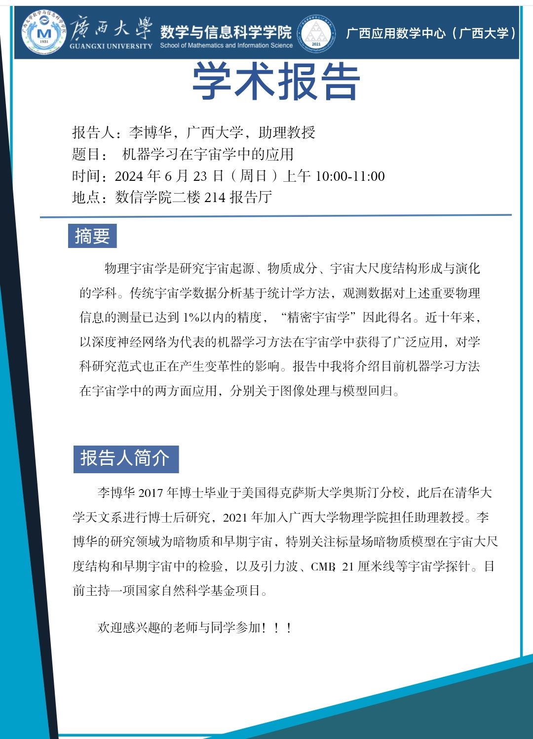 学术报告:机器学习在宇宙学中的应用