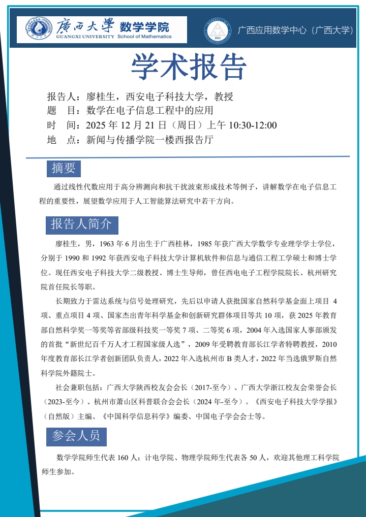 学术报告:数学在电子信息工程中的应用
