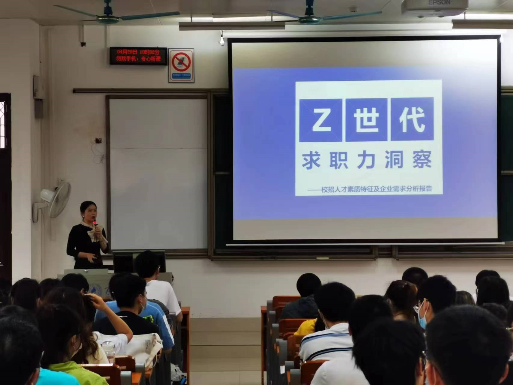 为助力2022届毕业生尽早就业、高质量就业, 4月29日,数信学院邀请智联招聘校园关系负责人、市场与用户增长部高级总监覃冬冬老师在第六教学楼601召开企业需求分析报告会,我院学生积极参加,报告会现场气氛热烈。