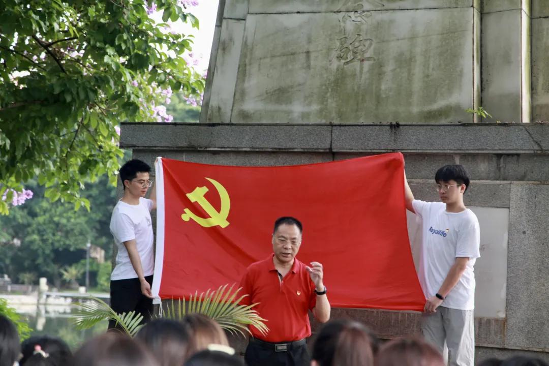 碧湖碧连天,君武园外远。广西大学碧云湖学生爱国民主运动纪念碑下,全体毕业生党员参加了由学院党委组织的毕业生党员教育活动。