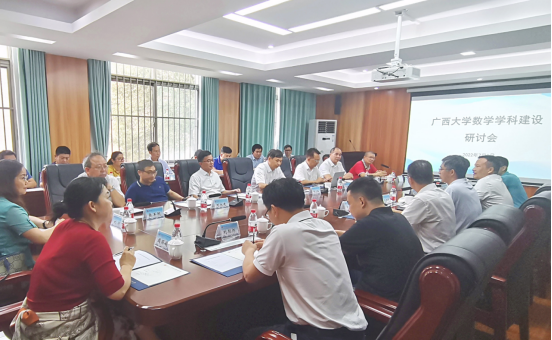 2022年7月8日下午,广西大学数学学科建设研讨会在广西大学数学与信息科学学院214会议室召开。广西大学党委常委、副校长马少健出席研讨会并致辞。广西区内各兄弟院校数学学科专家或负责人及数学与信息科学学院领导班子成员共30余人参加了此次会议。会议由广西大学数学与信息科学学院院长郭真华主持。