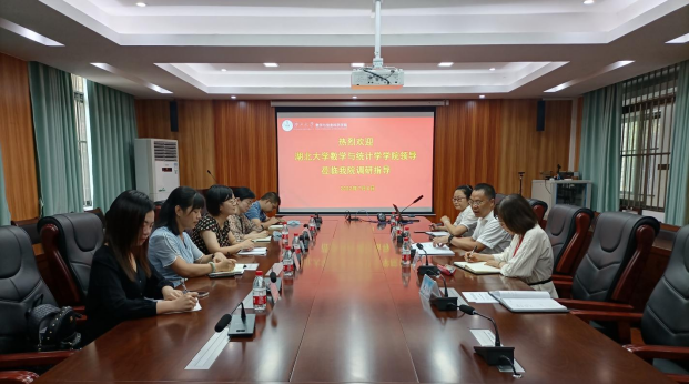 2022年7月4日上午,湖北大学数学与统计学学院党委书记周霞、党委副书记何肖,湖北大学党委组织部副部长、机关党委副书记黄江英、党委组织部组织科科长马兴建、党委组织部干部科干部陈秋瑞一行5人莅临广西大学数学与信息科学学院调研指导工作。学院党委书记黄建荣等领导班子成员参加了调研交流会。