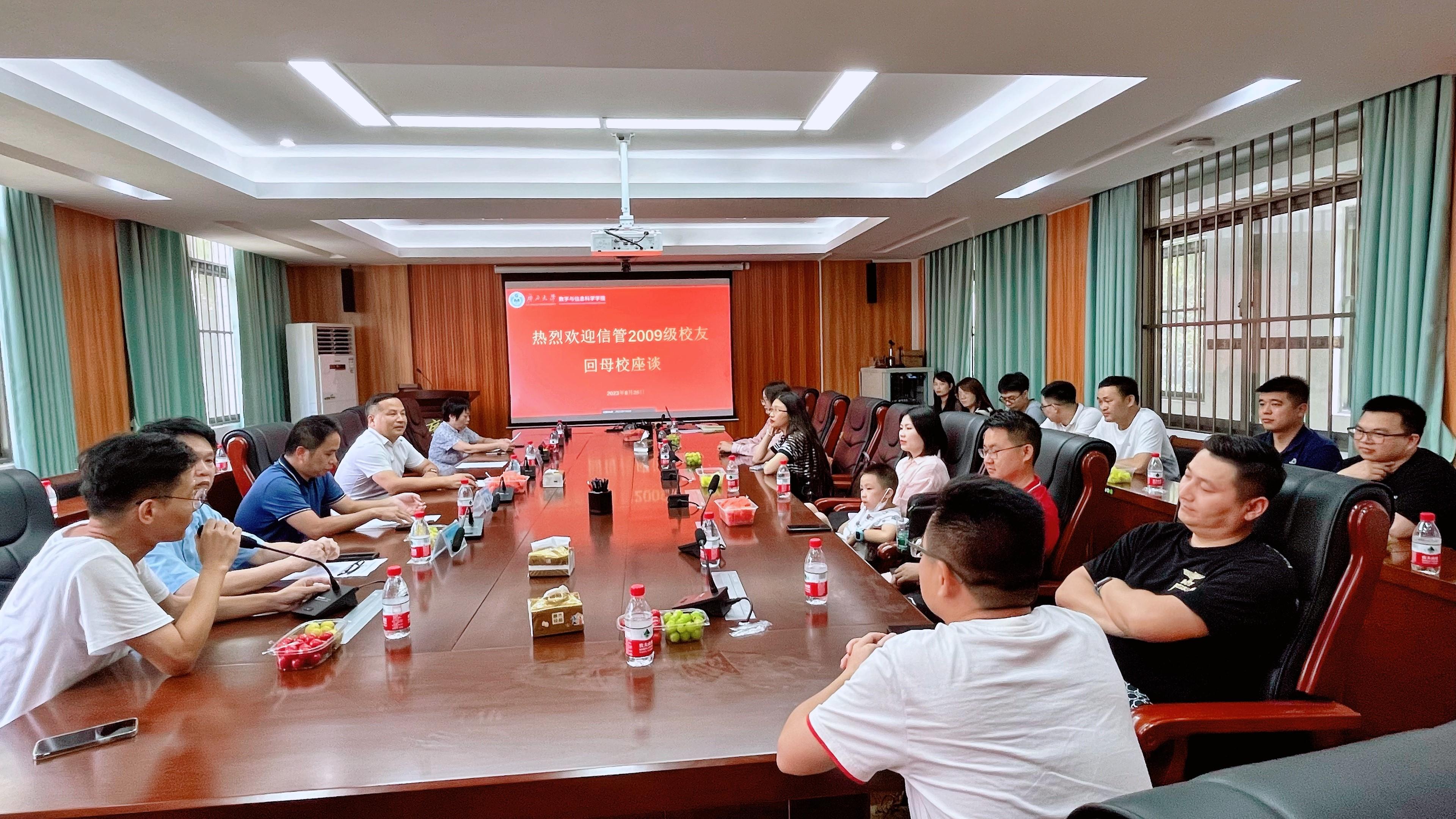金秋八月,丹桂飘香,硕果累累。8月26日下午,信管专业2009级校友重返母校并在学院举行毕业十周年座谈交流会,院长郭真华、院党委副书记郭海燕、副院长黄敢基等学院领导出席座谈会,学院团委书记孙晓黎、教师吕跃进、周婉枝、范英梅等一同参加座谈。