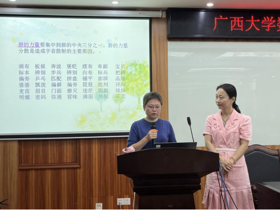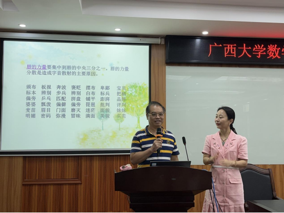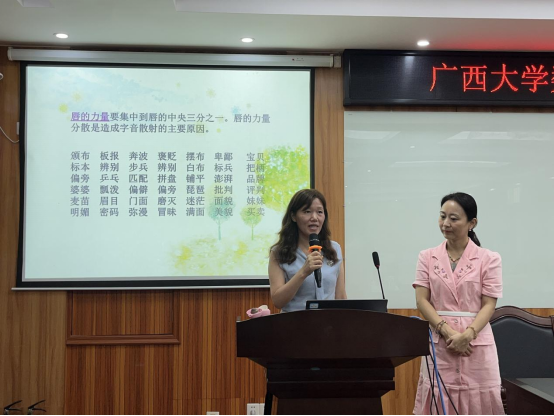 9月19日下午,为了帮助我院教师应对职业性用嗓问题,掌握发声技巧,科学保护嗓子,更好地完成教学工作,学院工会邀请广西大学艺术学院田昀艳副教授在学院109报告厅向全院教师作了精彩的“科学发声与嗓音保护”讲座。学院领导及全体教职工参加讲座,学院党委覃宪儒书记主持讲座。