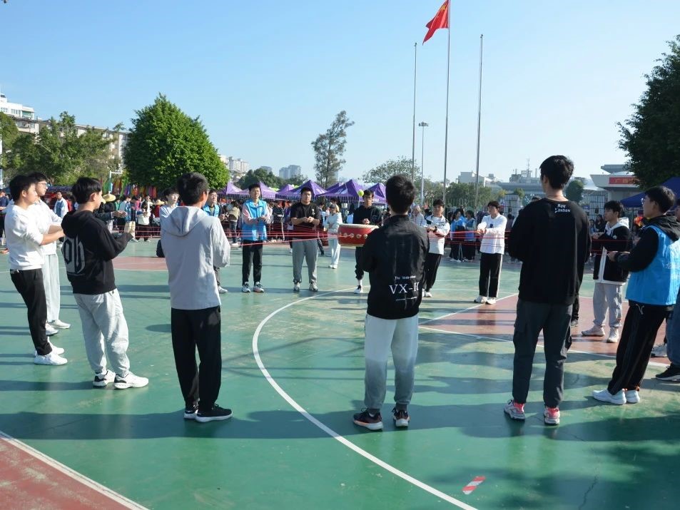 2021级硕士研究生代文昊(右一)获得男子实心球第三名