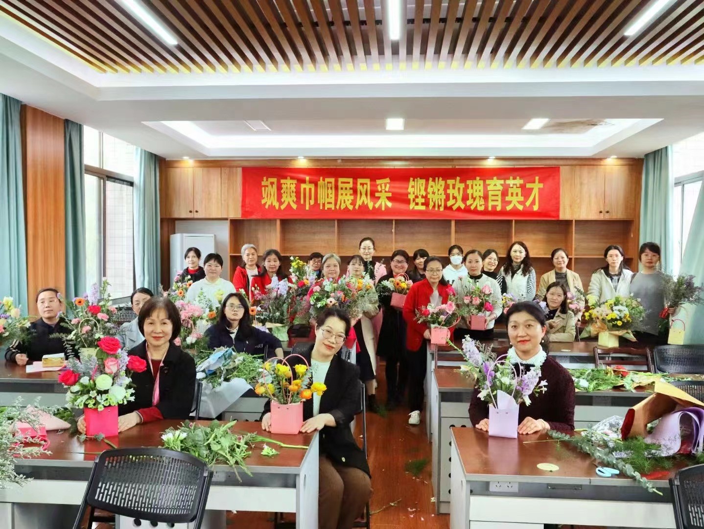 本次插花活动为学院的女教职工们提供了一个课余展示自我的平台,老师们借花抒怀,陶冶了情操,增进了交流。春风十里,芬芳如你。在这样温暖与团结的氛围中,数信学院的女教职工们必将以更加饱满的热情和更加昂扬的斗志投入到工作中,以“巾帼不让须眉”的精神,凝心聚力、奋勇争先,为数信学院的发展和学生的未来贡献巾帼之力!