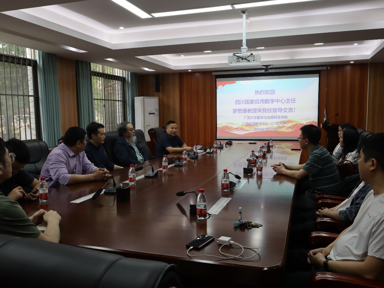 3月27日上午,四川国家应用数学中心主任、四川大学数学学院副院长罗懋康教授来我校指导交流,并在数学与信息科学学院214会议室与学院领导、教师代表座谈。