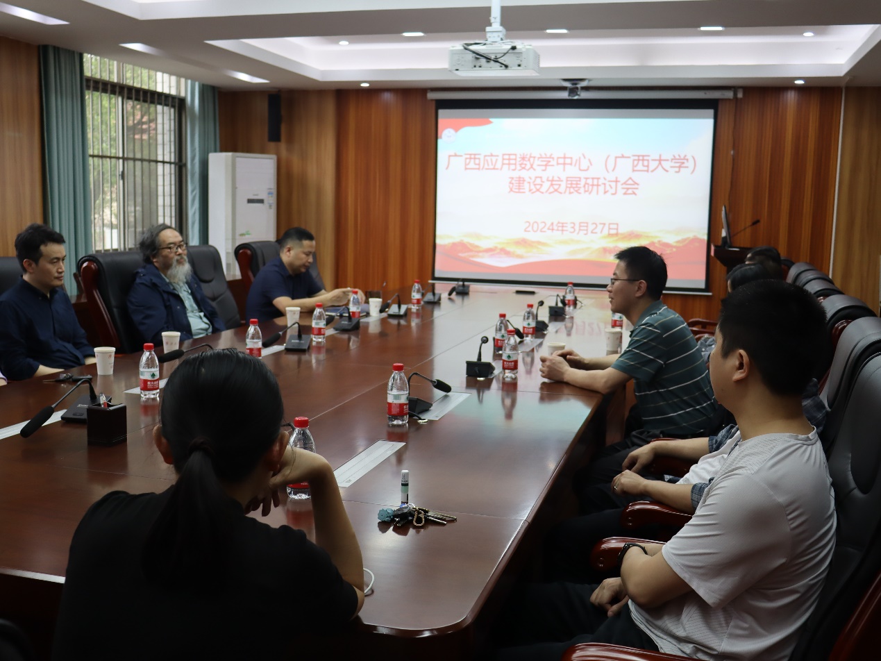罗懋康教授对我院学科建设给予了高度肯定,并对广西应用数学中心(广西大学)建设发展给予了方向性的指导和技术性的建议。他表示,目前国家高度重视原始创新和重大工程领域中的数学应用研究,希望通过不懈地努力,将我院数学学科建设提升至新的高度,将广西应用数学中心(广西大学)发展成为具有国际先进水平的国家区域性数学应用研究中心和具有一定国际影响力的数学研究基地;促进应用数学基础研究与科学技术发明、商业应用等衔接,为广西优势特色产业的健康发展提供可持续动力,切实为解决社会经济发展中的关键瓶颈数学问题作出贡献!