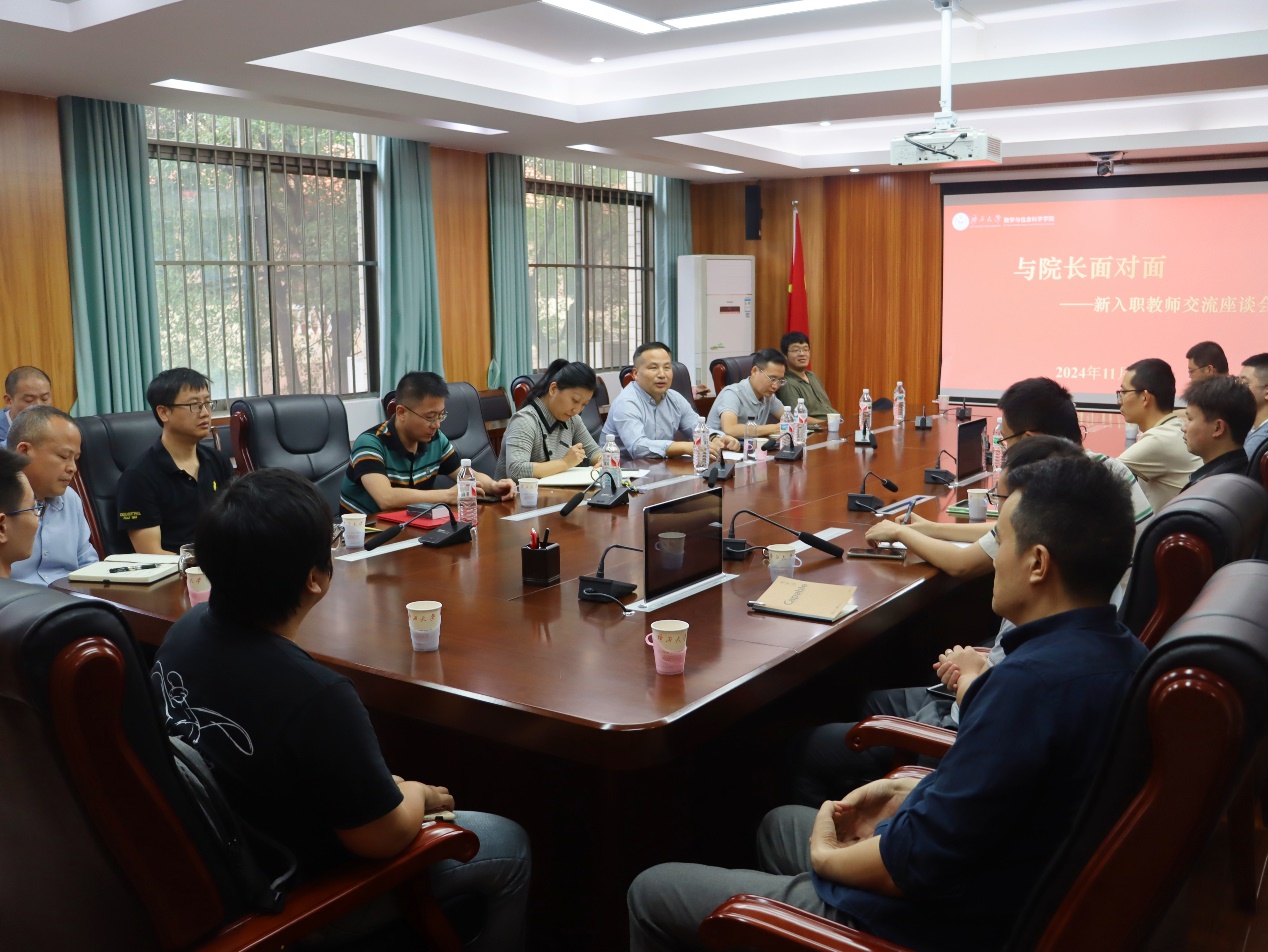 2024年11月5日,数学与信息科学学院在214会议室举行了与院长面对面——新入职教师交流座谈会。此次座谈会旨在了解新教师们入职后的实际需要和存在的困难,帮助教师们快速融入学校和学院,明确教学和科研方向。