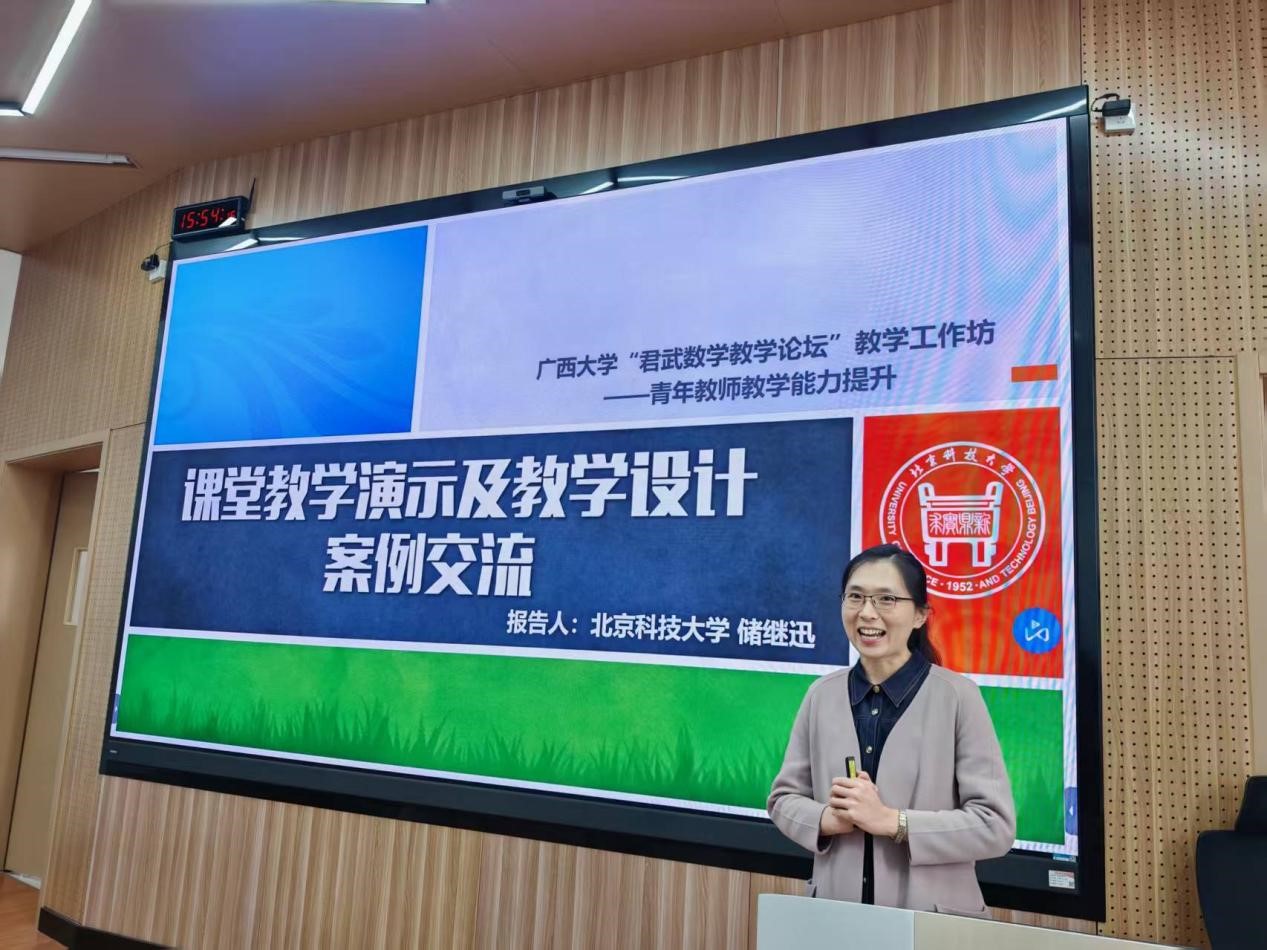 11月29日下午,我院与学校教务处(教师教学发展中心)联合举办“君武数学教学论坛——青年教师教学能力提升”教学工作坊。活动由学院副院长唐春明主持,特邀北京科技大学张志刚、储继迅两位教学专家现场指导,数学与信息科学学院、马克思主义学院、资源环境与材料学院、物理科学与工程技术学院等10个学院的50余名专任教师参与。