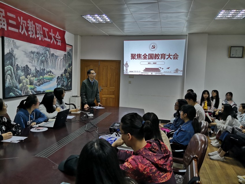 一是开展红色讲堂活动。学生党员肖敏萱、孟雯雅分别以“聚焦全国教育大会”、“弘扬五四精神,争做新时代青年”为主题开展红色讲堂,用PPT向大家汇报了学习体会,她们指出,新时代青年应树立远大理想,坚定信仰信念,要把学习党的政治理论知识作为一项重要内容。