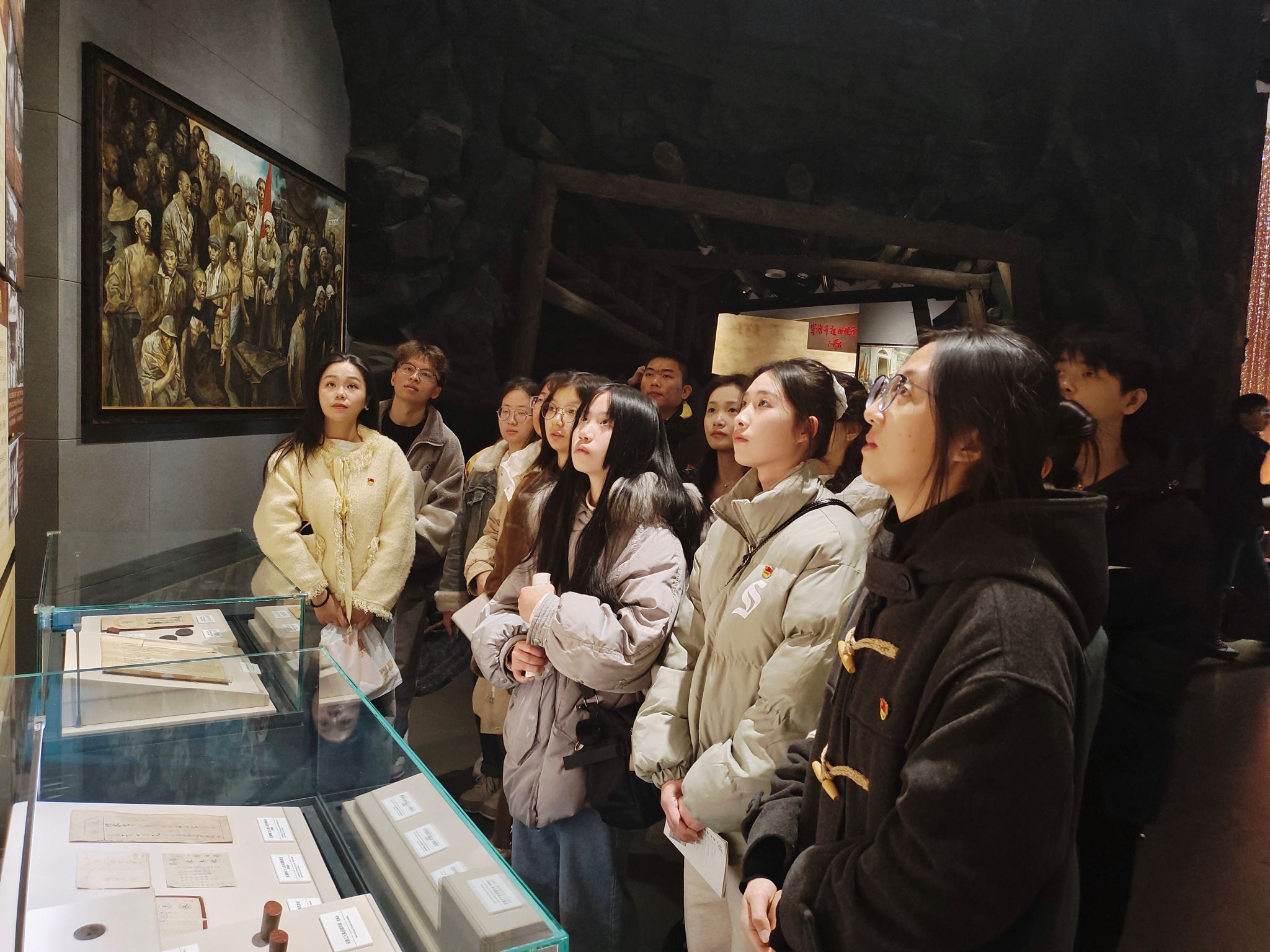 追溯革命历程,感悟初心如磐。“一个博物院就是一所大学校”,学生党员佩戴党员徽章,列队进入江西省博物馆,认真参观了江西革命史陈列馆。泛黄的照片、珍贵的文物、详实的史料,生动再现了江西这片红土地上的烽火岁月。从八一南昌起义打响武装反抗国民党反动派的第一枪到井冈山革命根据地的星星之火渐成燎原之势,从艰苦卓绝的长征之路到伟大的抗日战争与解放战争,党员们沿着历史的脉络沉浸式回溯,深刻领悟到中国共产党人矢志不渝为中国人民谋幸福、为中华民族谋复兴的初心使命。