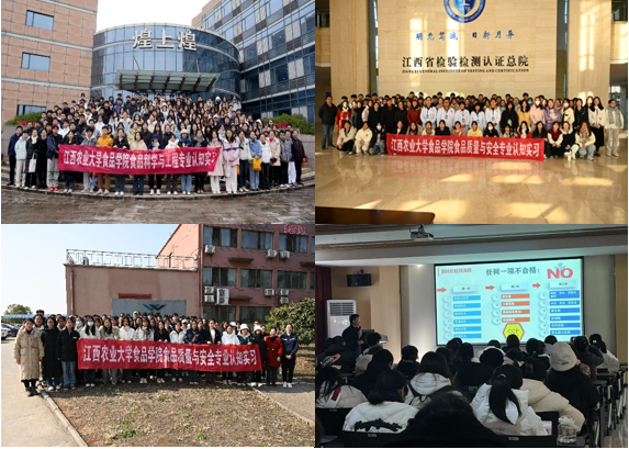此次实习分别在江西煌上煌集团食品股份有限公司、江西阳光乳业股份有限公司、益海嘉里南昌粮油食品有限公司和江西检验检测认证总院等校外实习基地进行。实习单位安排专人为同学们介绍各企业的基本情况和发展,参观讲解产品生产工艺流程和化验室。江西阳光乳业股份有限公司还特意安排了乳制品有关知识的讲座,通过讲座让同学们对我国乳制品的发展现状和行业发展趋势有了一定的了解。