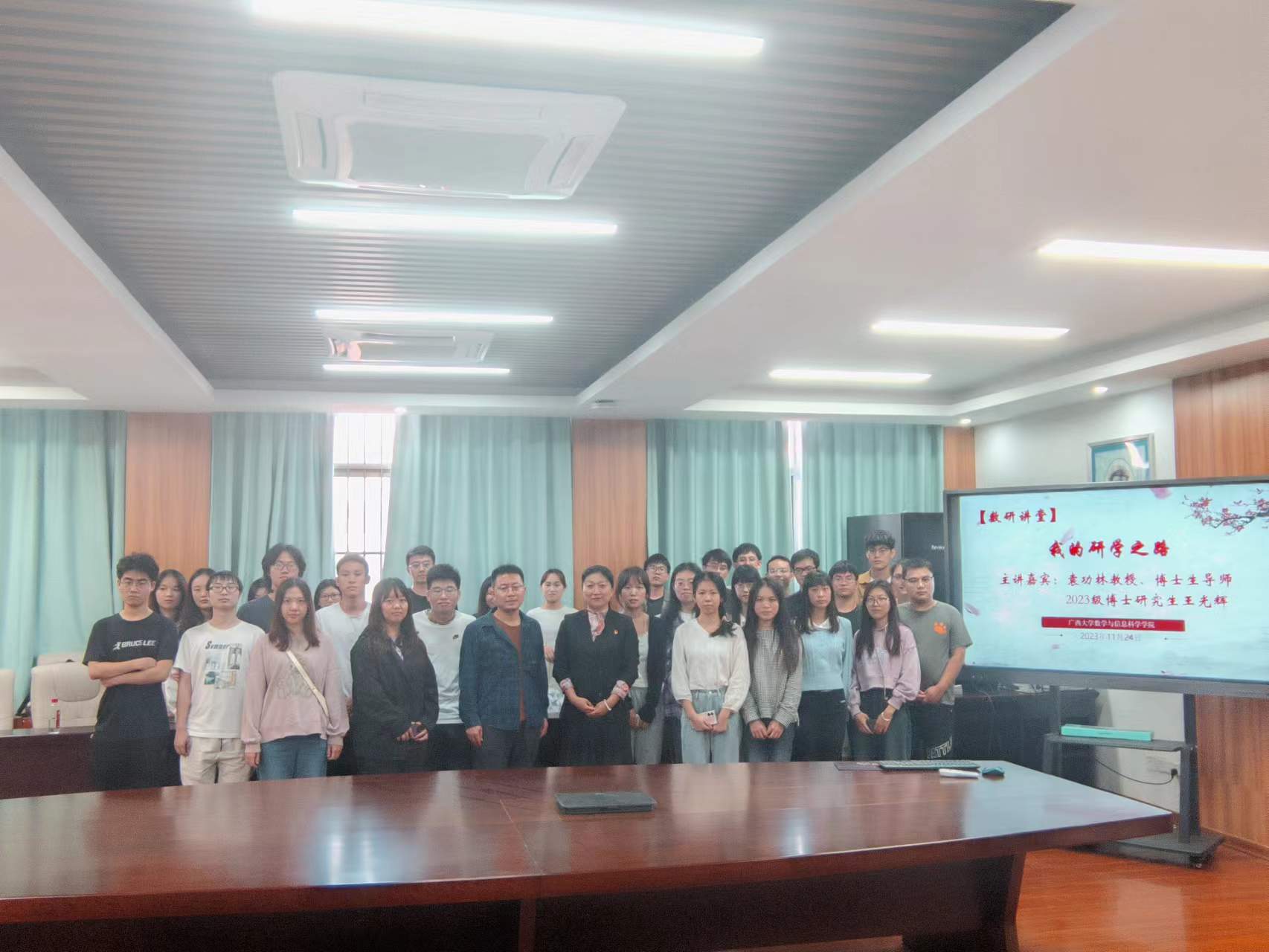 “数研讲堂”是由数信学院党委领导、学院团委具体指导、院研究生会负责实施的研究生学术沙龙活动,是我院研究生会获批的广西研究生教育创新计划项目(君武“研”学堂——中国—东盟新一代信息与大数据技术产业倍增发展论坛)的组成部分之一。活动包含但不仅限于举办学术活动,还可进行学科知识的互助学习,学科竞赛、考博经验分享、思政理论学习、文明礼仪养成等,旨在通过名师讲学、学长领学、学生探讨交流,营造我院研究生的浓郁学术氛围和文化氛围,碰撞思想,发散思维,互学互鉴,共同成长,展现数信学院研究生的科学素养新风貌,提升研究生学术素养,加强研究生基层组织建设,全面激发研究生刻苦钻研、勇担重任的内生动力,以高质量研究生管理体系和科研水平推动我院高质量人才培养。