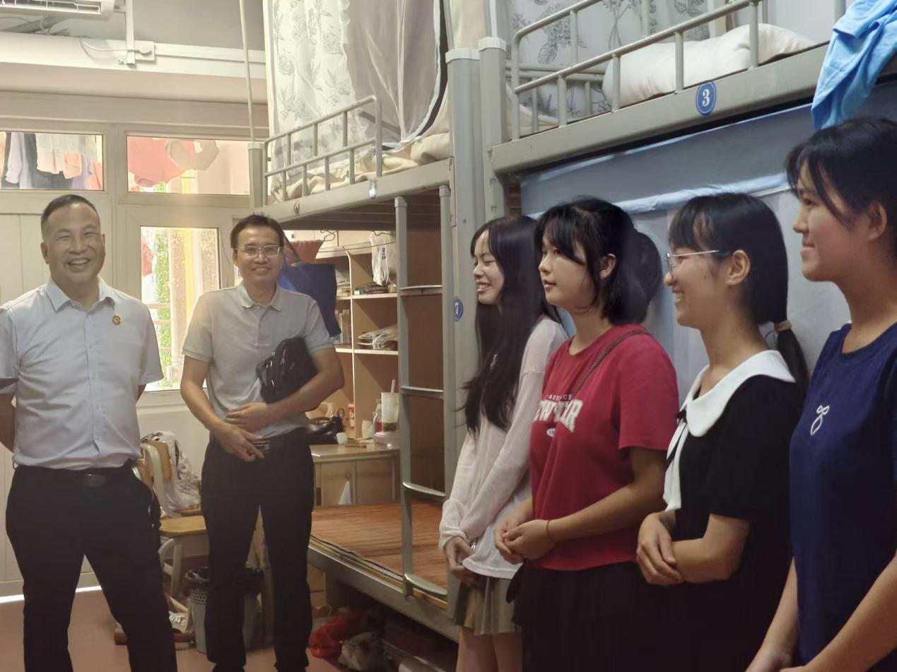 9月1日下午,数学与信息科学学院院长郭真华带队走访我院2024级新生宿舍,学院党委副书记唐旭彬、副院长唐春明、副院长钟明溁、副院长石志刚等以及辅导员老师们一同走访。