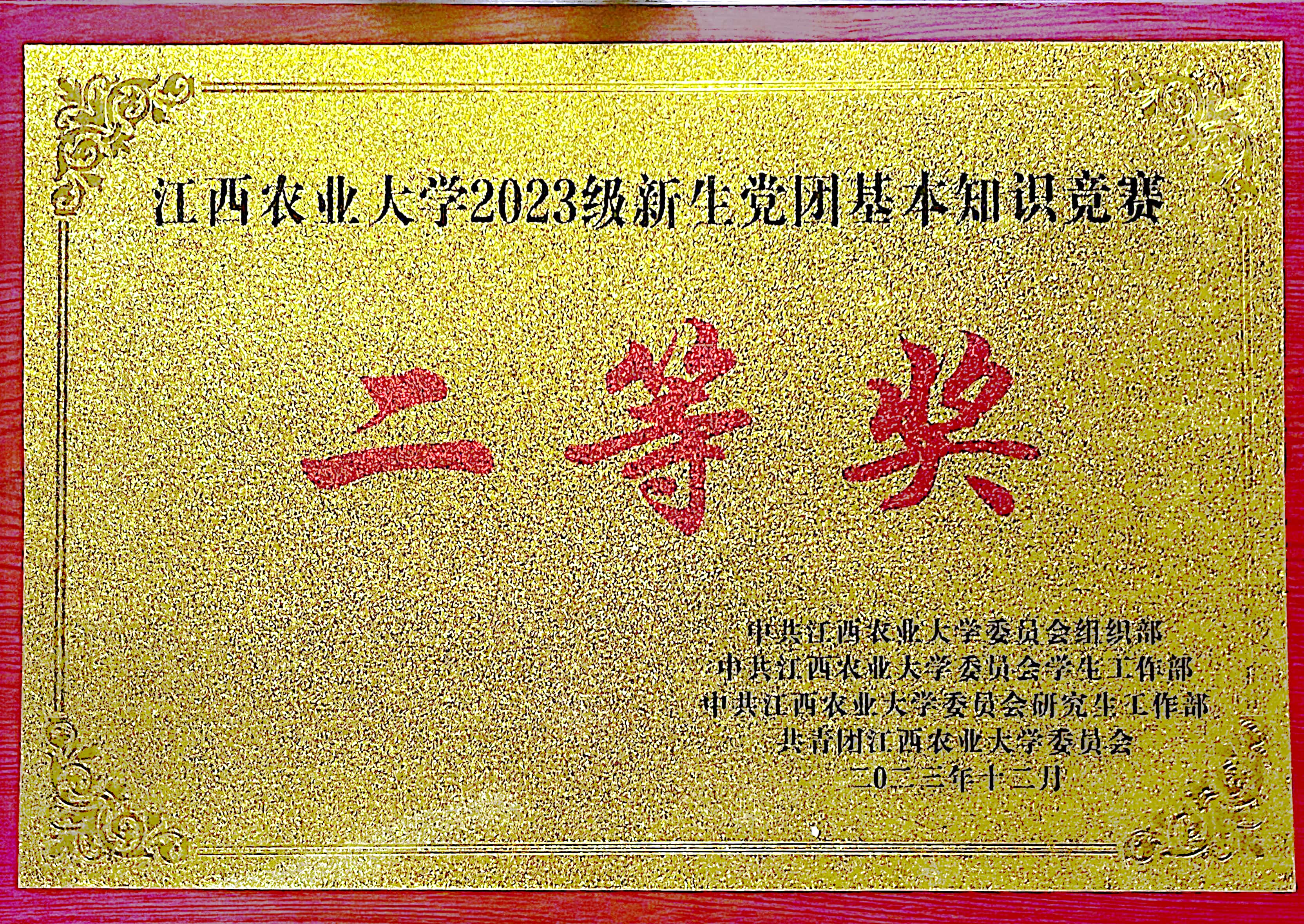 12月14日晚,由中共江西农业大学委员会组织部、中共江西农业大学委员会学生工作部、中共江西农业大学委员会研究生工作部、共青团江西农业大学委员会主办的“学习贯彻新思想,牢记嘱托建新功”江西农业大学2023级新生党团基本知识竞赛决赛在校大礼堂举行,我院6名学生代表学院参赛,经过激烈角逐,荣获第二名、二等奖,蝉联亚军。