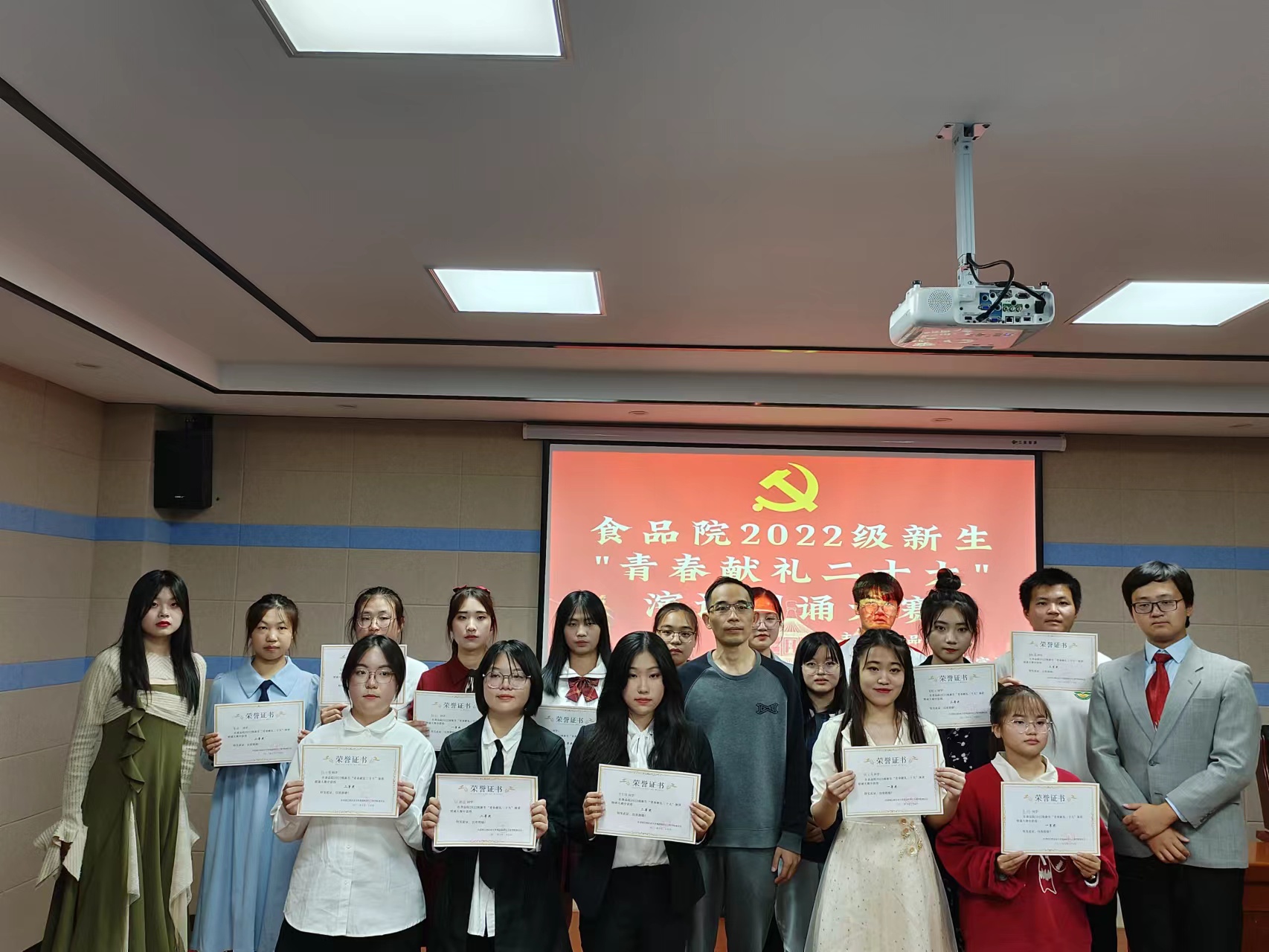 本次大赛分为主题演讲、现场朗诵两个环节。12位决赛选手围绕着“青春献礼二十大”这一主题进行了声情并茂的演讲和朗诵。3位评委对每个选手的表现进行了点评、指导。经过激烈角逐,惟义食工2201陈玲、食安2203盛烨、食安2201何文清荣获一等奖;食工2202张艳姣、食工2201柯力楚、食工2202贾越、食安2201邓思婷荣获二等奖;食工2202唐凯豪、食安2202肖艳云、食安2202陈彦心、食工2202郭蕊、食安2203张杰荣获三等奖。
