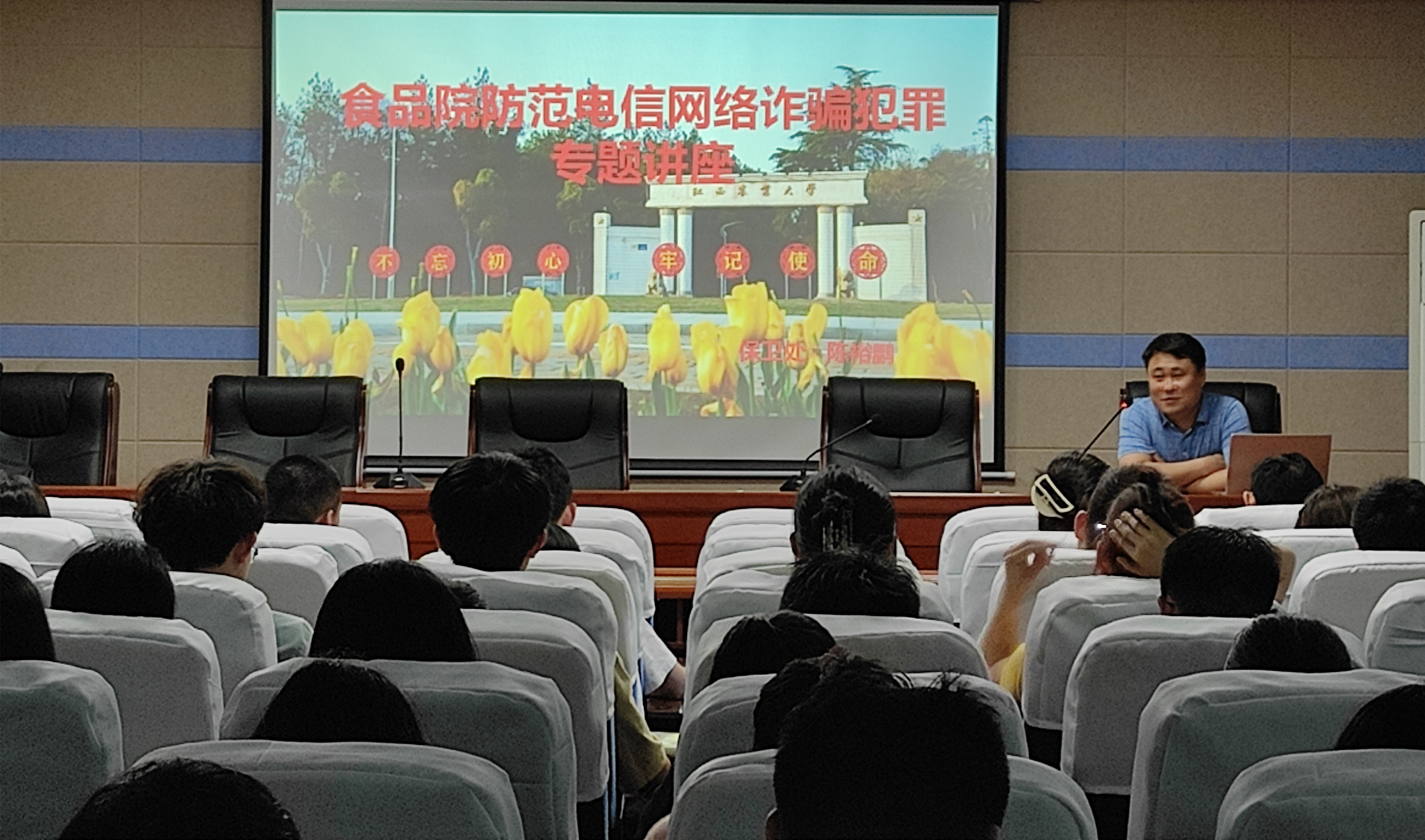 强化网络诈骗教育引导,增强网络安全防范意识。我院展开多样形式的反网络诈骗的专题宣讲活动,让官Q、官微发挥新媒体的宣传优势作用,同时也动员全院老师到反诈案例宣讲中来,并选拔了36名反诈志愿者在班级宣传反诈知识。此外还链接了专家资源,邀请校保卫处副处长陈裕鹏为师生开展反诈骗专题讲座。在形象生动的真实案例、情景模拟与深入浅出的网络诈骗概述讲座宣讲的同时也提出富有针对性、极具实用性的诈骗防范技巧和自我保护措施,呼吁广大学子主动学习网络电信防诈知识,遵守“不听、不信、不转账、不参与”原则,落实转账500元及以上向班主任或者辅导员老师询问报备的制度。