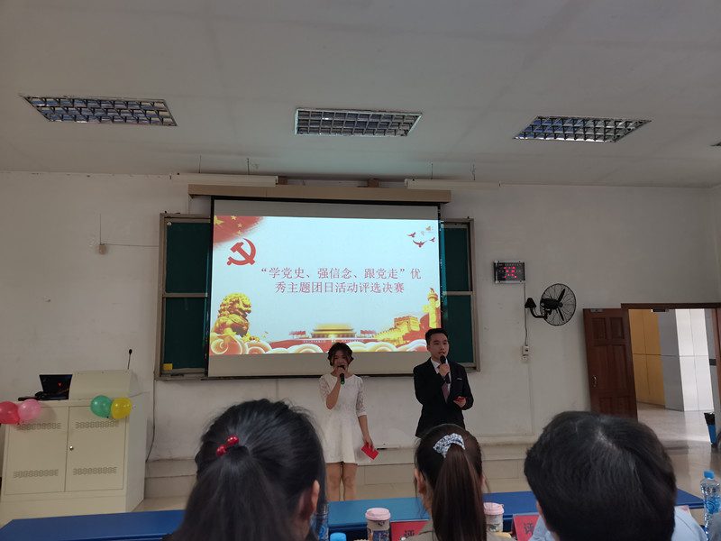 为庆祝中国共产党成立100周年,提高青年大学生的政治素养、增强团支部凝聚力,更好地发挥先进典型的示范作用,加强各团支部之间的联系,激发广大学生学党史的热情,2021年4月20日下午,由院团委主办、院团委组织部承办的“学党史、强信念、跟党走”优秀主题团日活动评选决赛在二教107举行,院团委书记黄月胜、院团委委员、各团支部团员代表共140余人参加活动,院团委学生副书记蔡雅馨、院学生会科创部负责人卢狄和多位兄弟学院团委学生副书记担任评委。