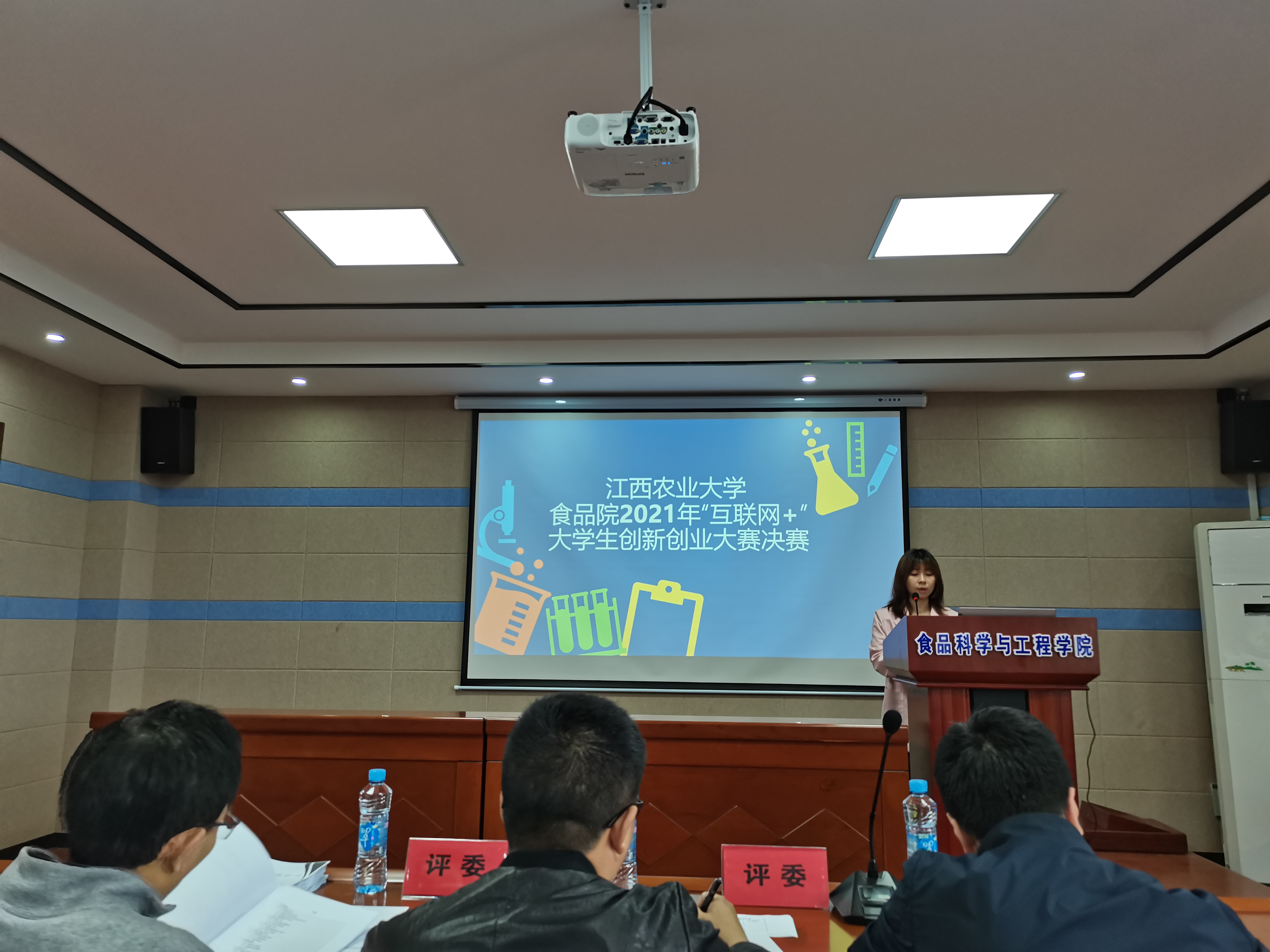 为响应“万众创业,大众创新”号召,持续激发大学生创新创业热情,展示创新创业成果,进一步提高大学生的创业意识和创新创业能力,展示创新创业成果,2021年4月27日下午,由学院主办、院学生会科创部承办的食品院2021年“互联网+”大学生创新创业大赛决赛在院五楼报告厅举行。校学工处办公室主任肖轲、院团委书记黄月胜、吴国强老师担任评委,学院党委副书记胡丹出席。