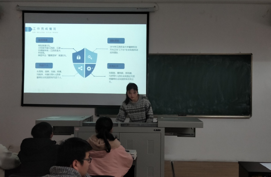 活动在黄老师的讲话中拉开了序幕,随后,团委学生副书记胡婷、学生会主席刘颖分别对团委和学生会的工作进行了总结。接着,团委学生会各部门部长做汇报。部长以PPT的形式把自己部门上学期的工作直观全面的展示给了现场观众及老师。他们耐心讲解自己部门的工作,展示了自己部门所取得的成绩,也客观看待了部门中存在的不足。