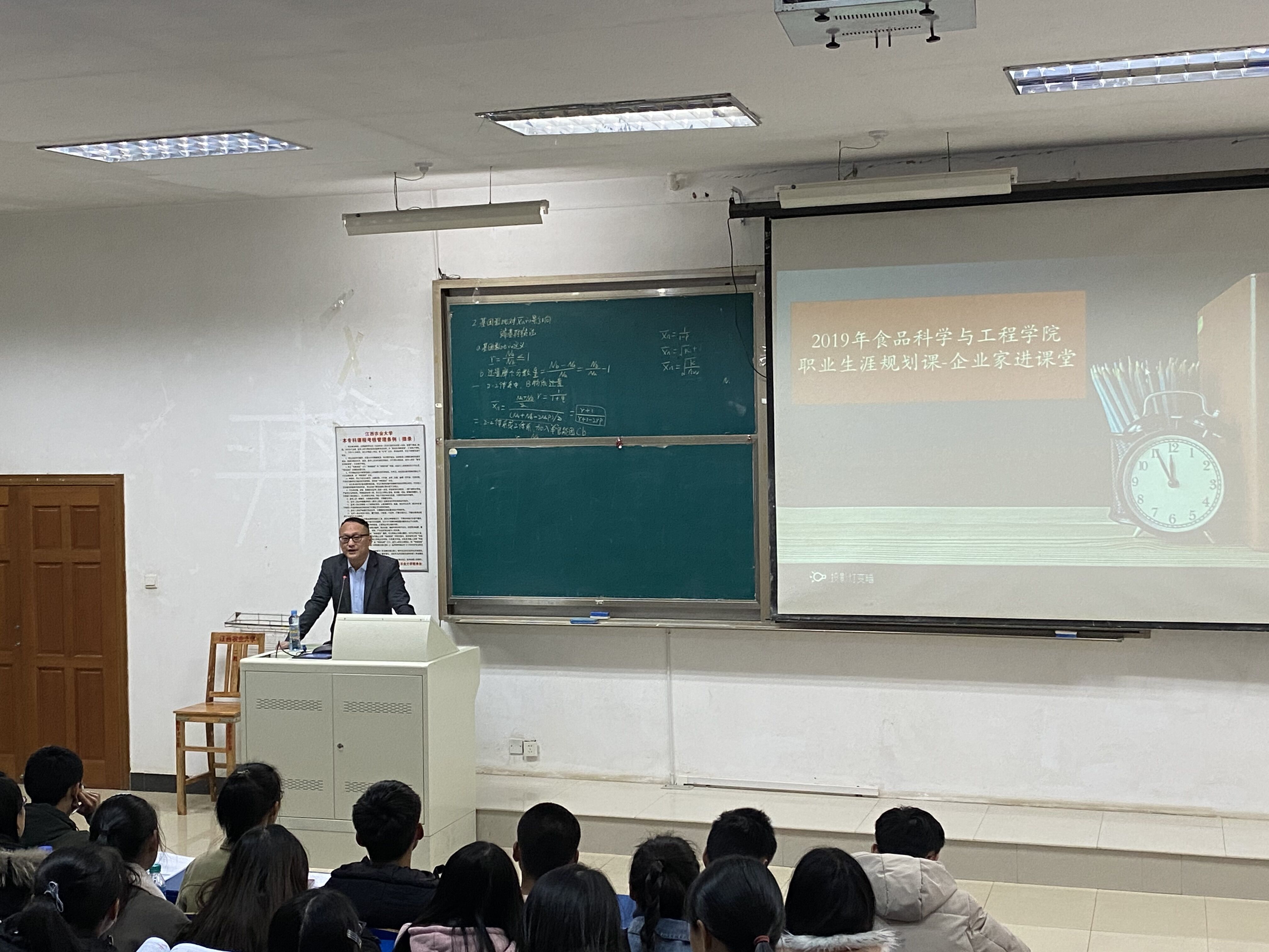 12月3日下午,我院于二教106开展了职业生涯规划课——校友企业家进课堂活动,旨在帮助学院2019级新生精准找到大学学习生活目标,了解国家和社会对人才的最新需求情况,本次活动邀请了江西农业大学1999届优秀毕业生校友,江西大筑文化传播有限公司董事长许高志先生为学院全体233名大一新生进行授课,活动由学院就业指导中心刘洋老师主持。