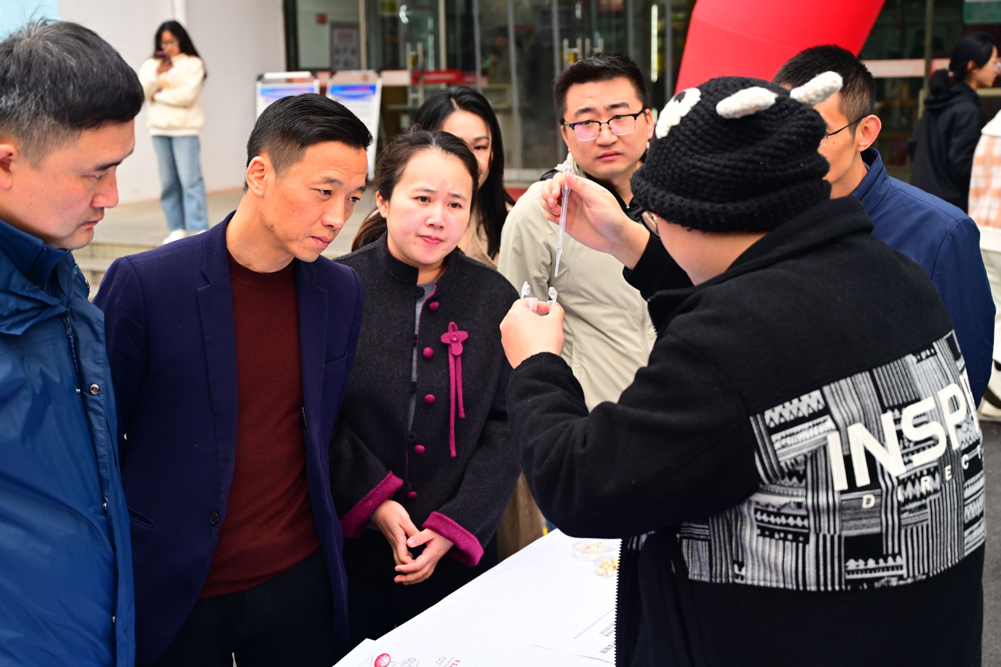 博览会上,刘斯龙充分肯定了食品科学与工程学院各科研团队取得的成果,并鼓励科研团队成员要积极关注食品前沿科技,坚持自主创新,努力将科研成果转化为发展动力。