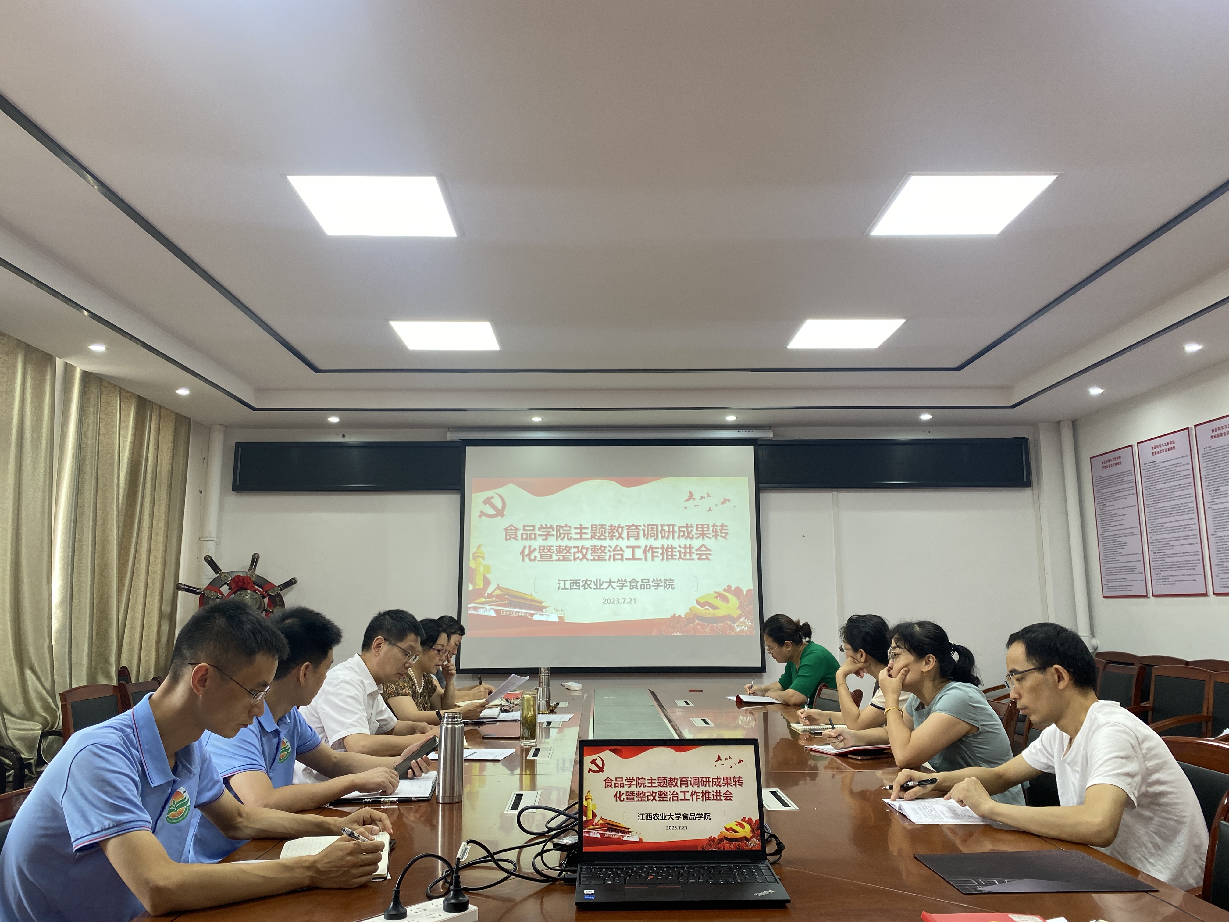 为进一步推进学院主题教育工作走深、走实,学院于7月21日上午在学院党委会议室召开主题教育调研成果转化暨整改整治工作推进会,学院班子成员王兰、王文君、李煊、涂勇刚、熊建华出席会议,学院党支部书记黄月胜、牛丽亚、朱丽琴,支部委员李景恩列席会议,会议由学院党委书记王兰主持。