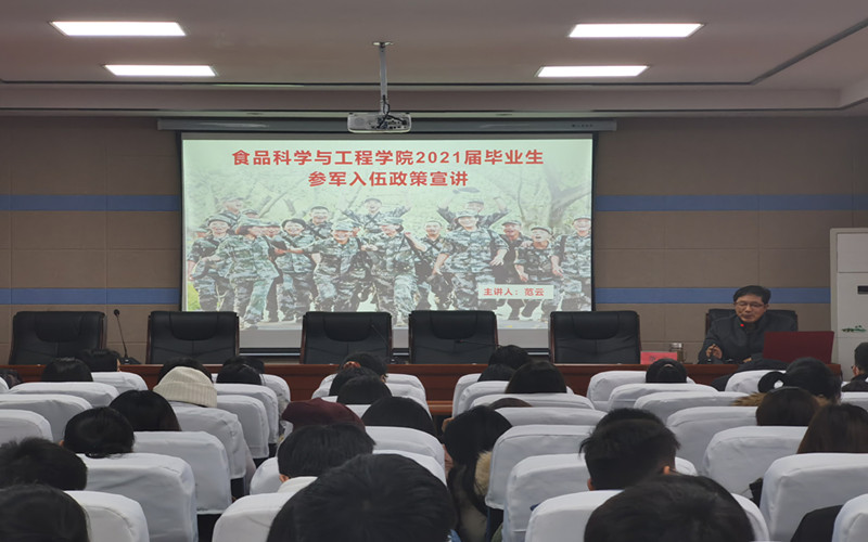 为了进一步为做好学校2021年度大学生征兵工作,加强政策宣传,鼓励更多本科应届毕业生报名参军入伍,学院党委书记范云于12月29日在院办报告厅面向2021届本科毕业生开展入伍政策专题宣讲,近两百名毕业生参加。