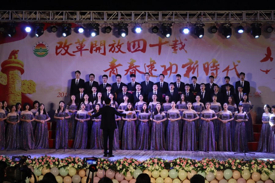 12月7日晚七点,江西农业大学“改革开放四十载,青春建功新时代”大学生爱国歌曲大合唱比赛在校大礼堂隆重举行。