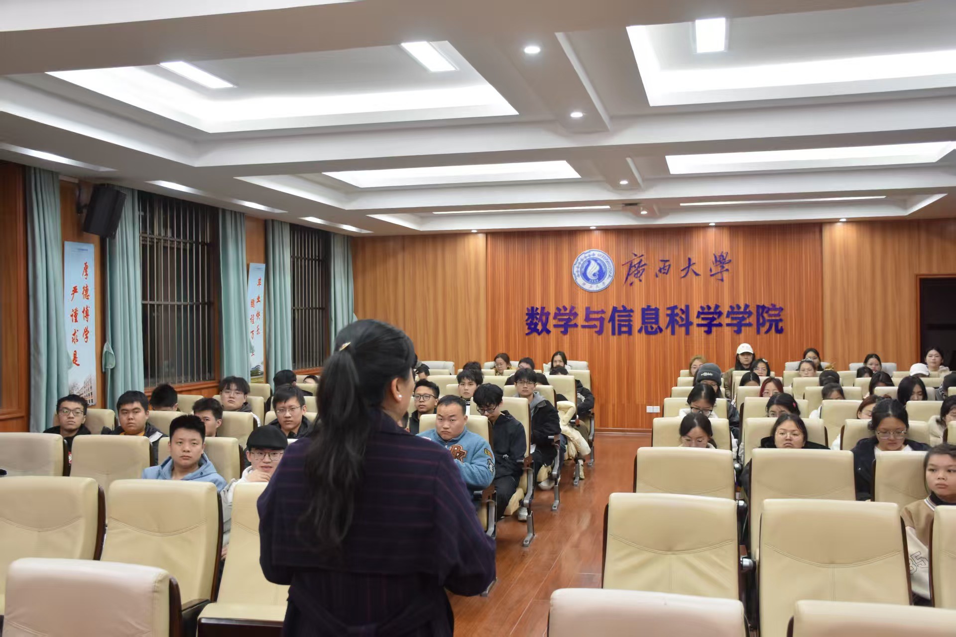 2025年3月7日,数学与信息科学学院在学院报告厅召开2025届毕业生毕业去向落实第三次动员会。学院党委副书记唐旭彬、辅导员刘春霞、2025届全体毕业生参加会议,特邀玉林新世纪高级中学林俊宇校长做求职技能培训。